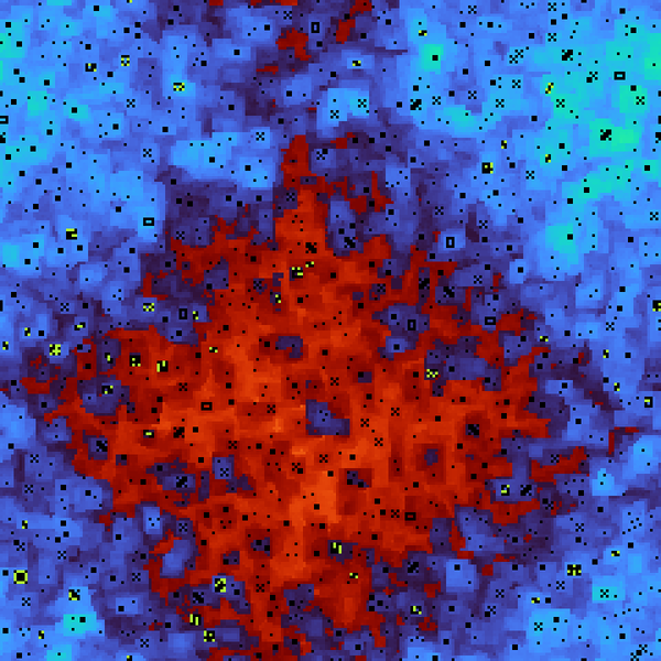 Von Neumann neighbourhood cellular automata have been used to create these images. More information about the generation process can be found at: